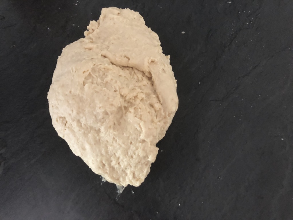 逆にべたべたする場合は、ディンケル粉 (スペルト小麦) を足して、調整。