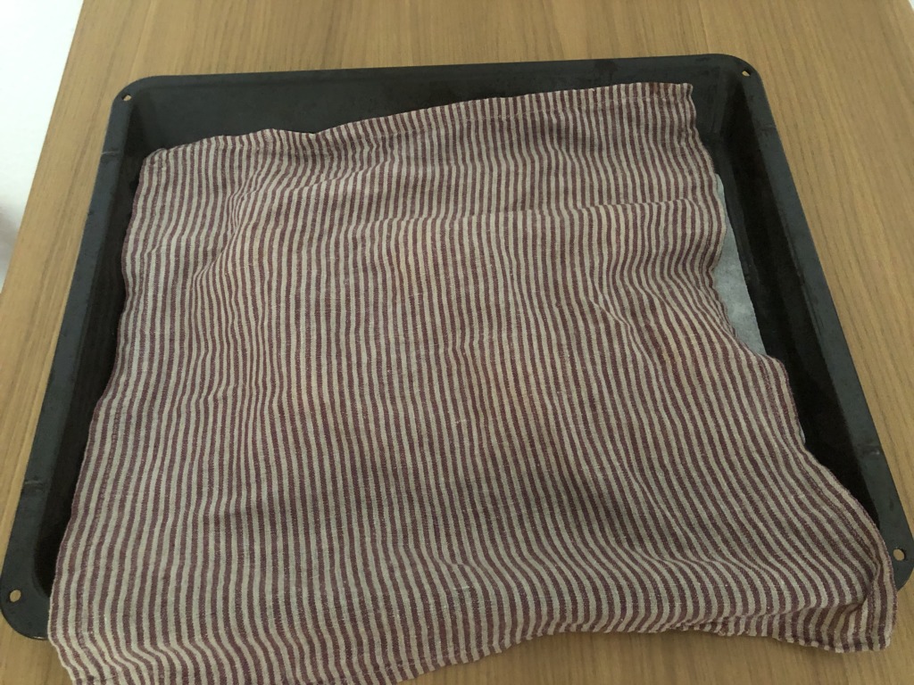 ヒーターがない時は、お湯を入れた容器や湯たんぽをオーブンに入れて、発酵させています。