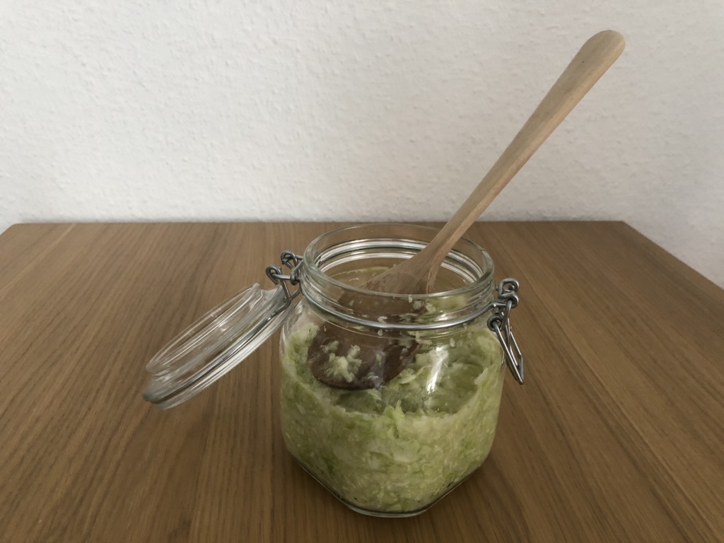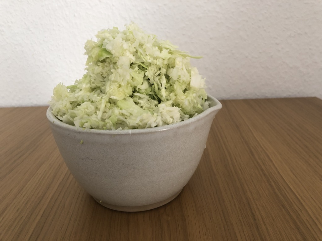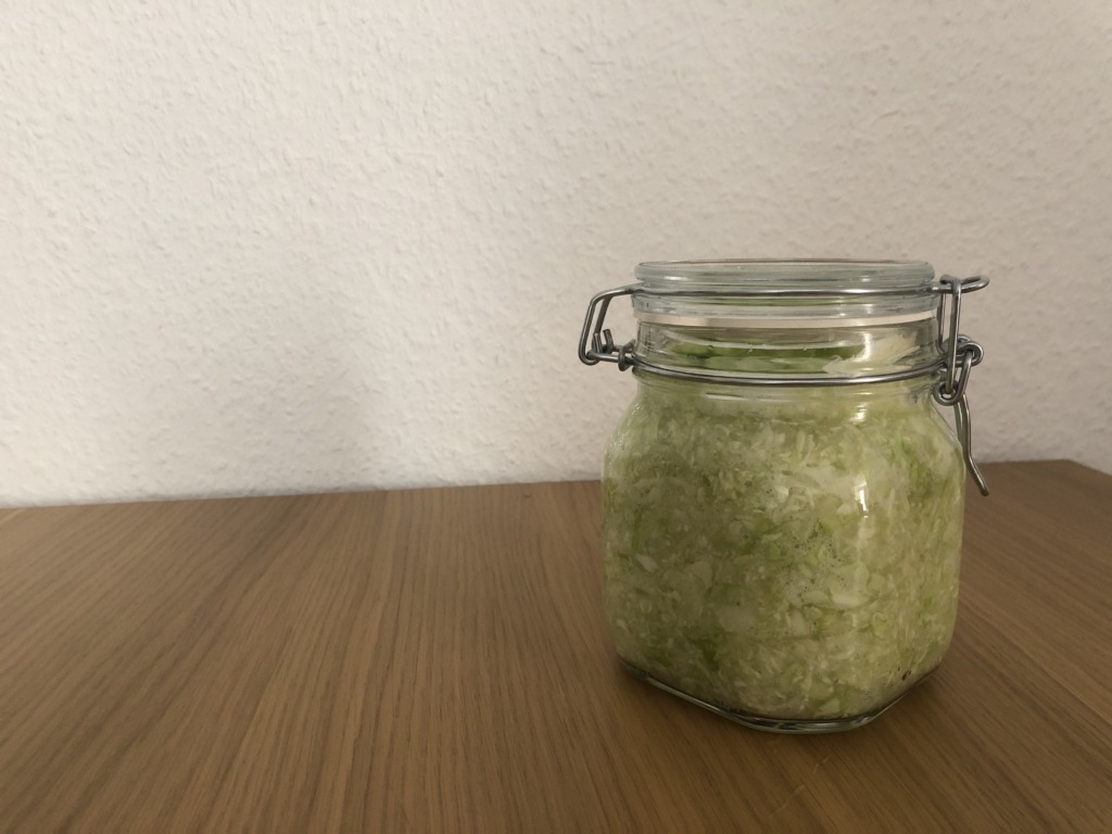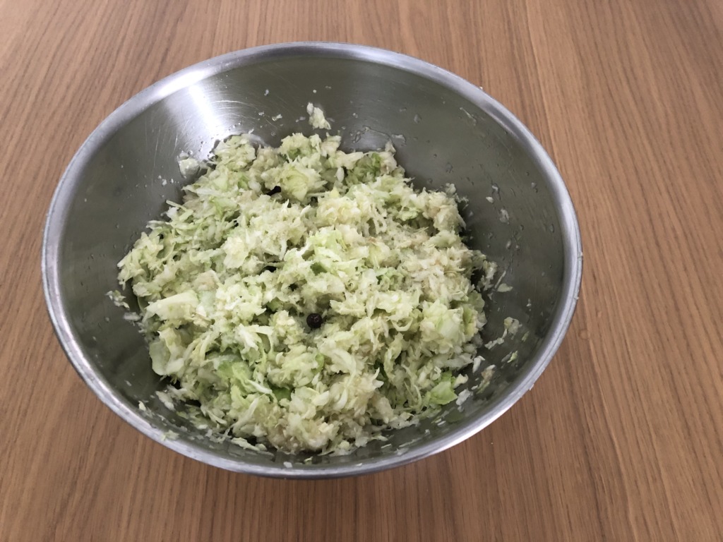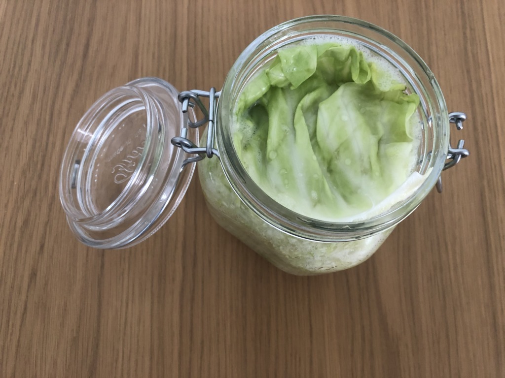 こうすることで、キャベツが空気に触れにくくなり、雑菌防止になり、嫌気性の乳酸菌がよりよく発酵するそうです。